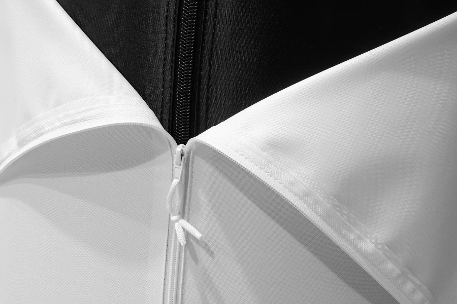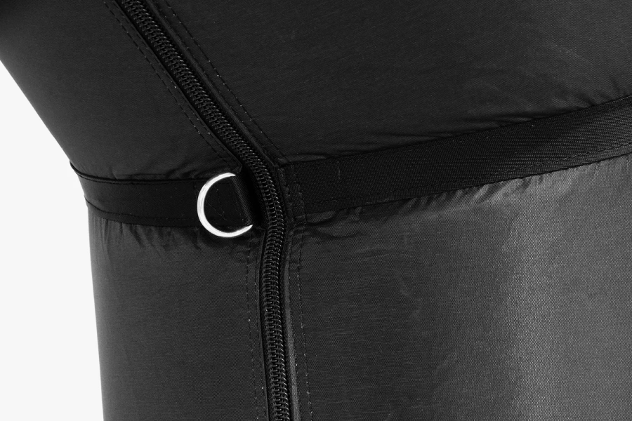 Brama jest wykonana z wodoodpornego, impregnowanego materiału, który nie chłonie wilgoci i jest odporny na umiarkowane warunki pogodowe.
