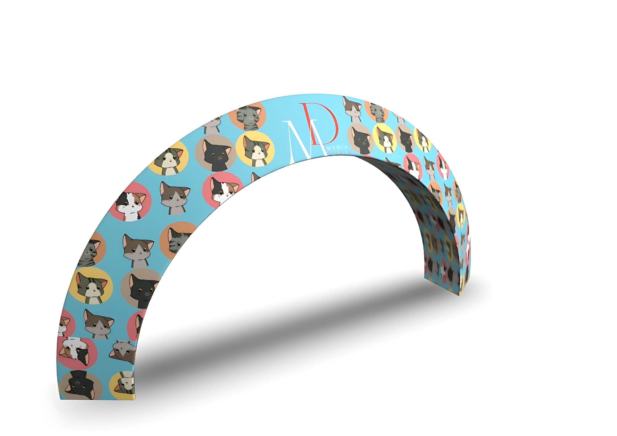 Brama tekstylna w kształcie łuku GATE wyróżnia się przestrzenną formą łuku, co nadaje jej nowoczesny i dynamiczny wygląd. W przeciwieństwie do standardowych, prostych bram, jej unikalny kształt zwiększa widoczność reklamy z różnych perspektyw.
