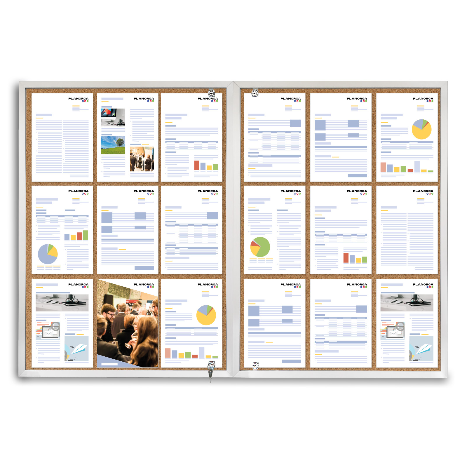Dwudrzwiowa gablota korkowa Tendance to eleganckie i funkcjonalne rozwiązanie do prezentacji materiałów w różnych przestrzeniach, takich jak biura, szkoły, instytucje publiczne czy galerie sztuki. Gablota została wykonana z wysokiej jakości materiałów, co zapewnia jej dużą trwałość i odporność na uszkodzenia mechaniczne, a jednocześnie gwarantuje jej estetyczny wygląd.