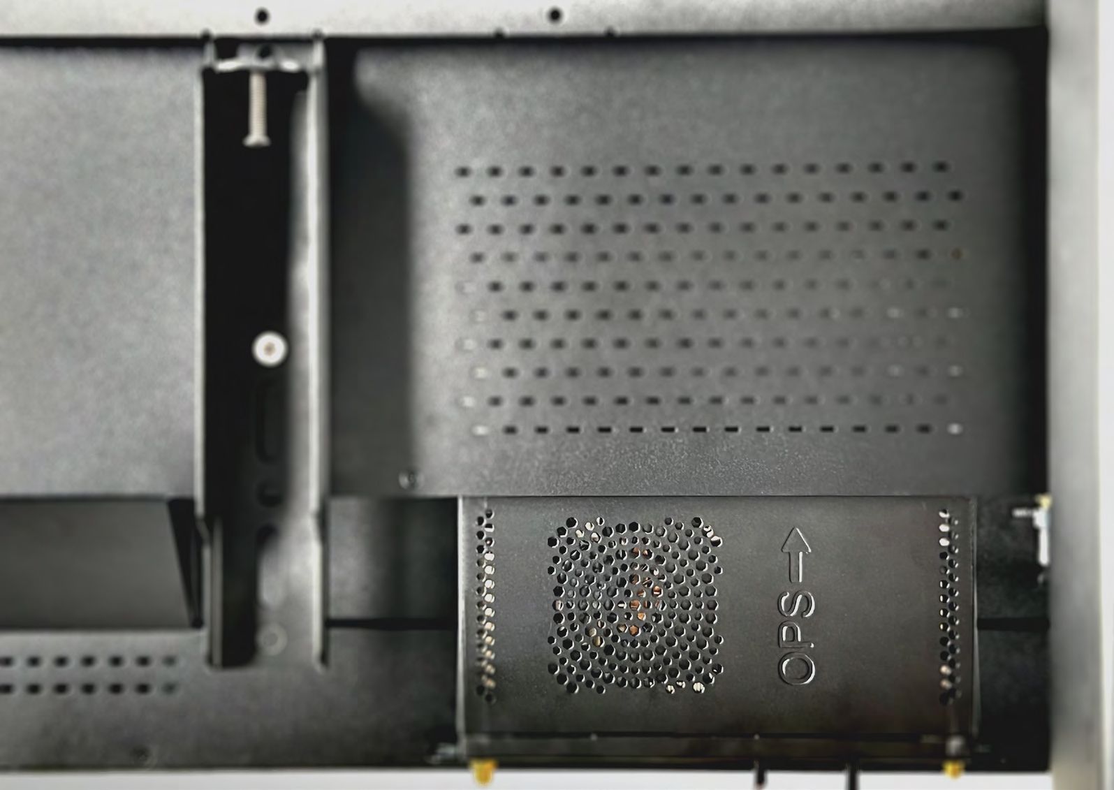 Slot OPS jest zgodny z międzynarodowym standardem i umożliwia korzystanie z odtwarzacza VM (lub dowolnego innego odtwarzacza OPS dostępnego na rynku), który można schować w obudowie. To szybkie połączenie ułatwia także konserwację lub modernizację odtwarzacza.