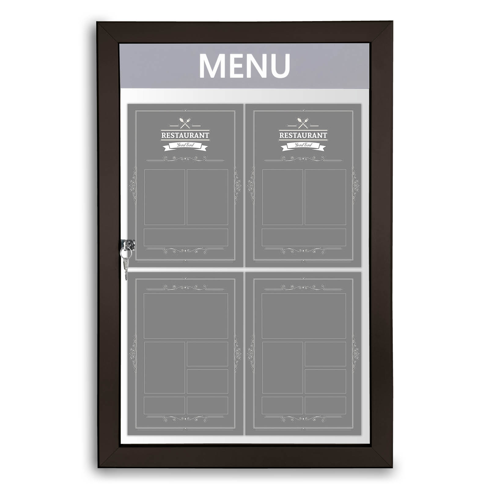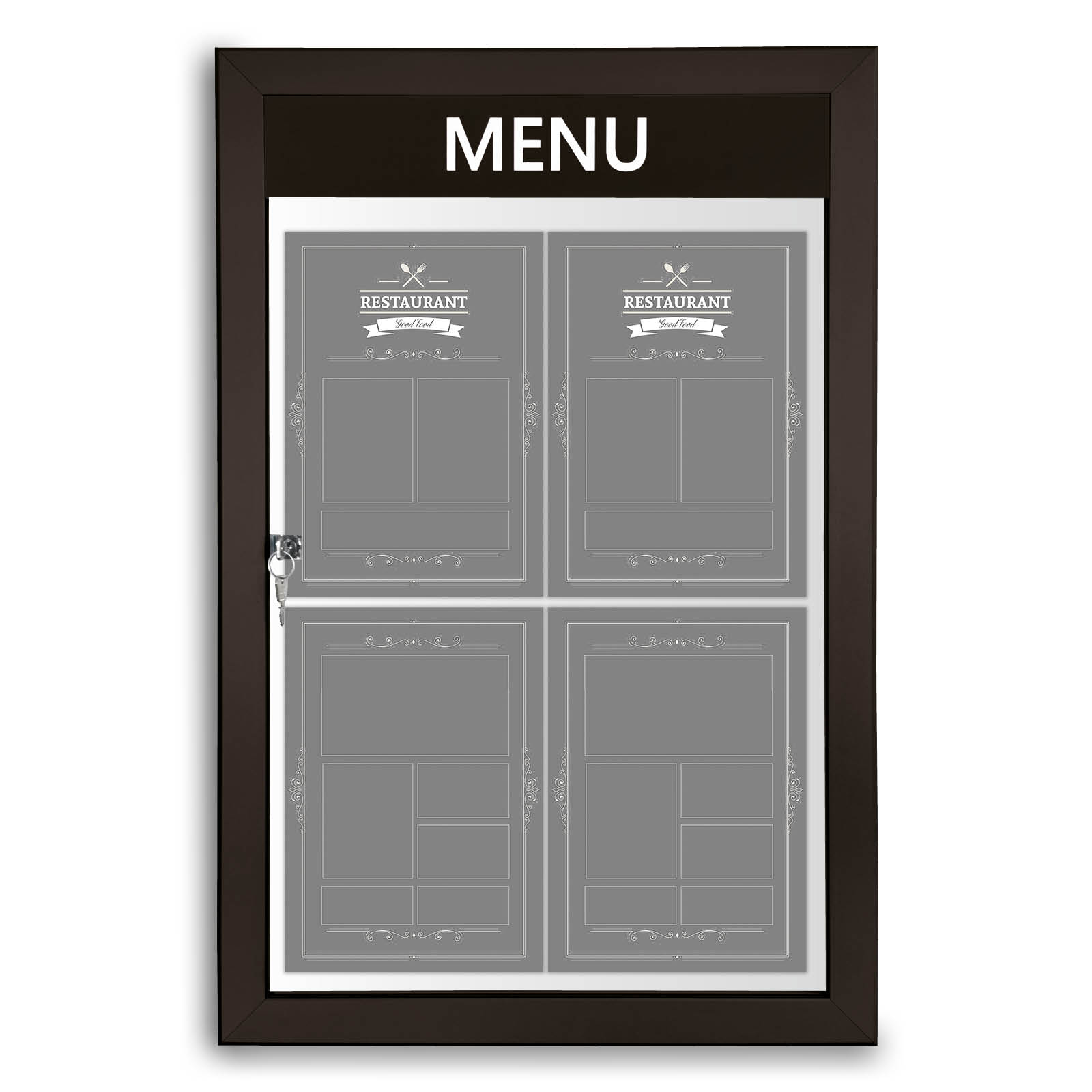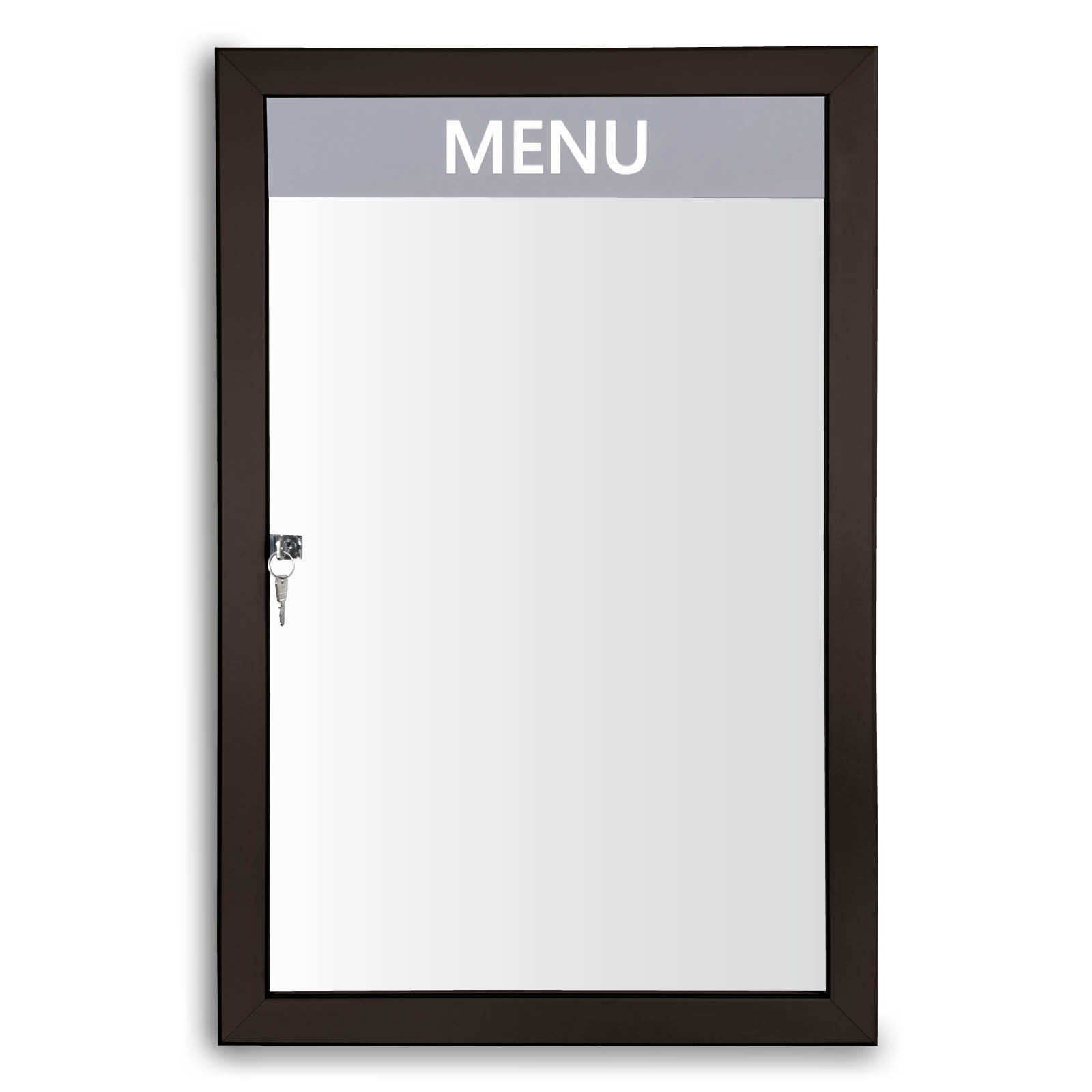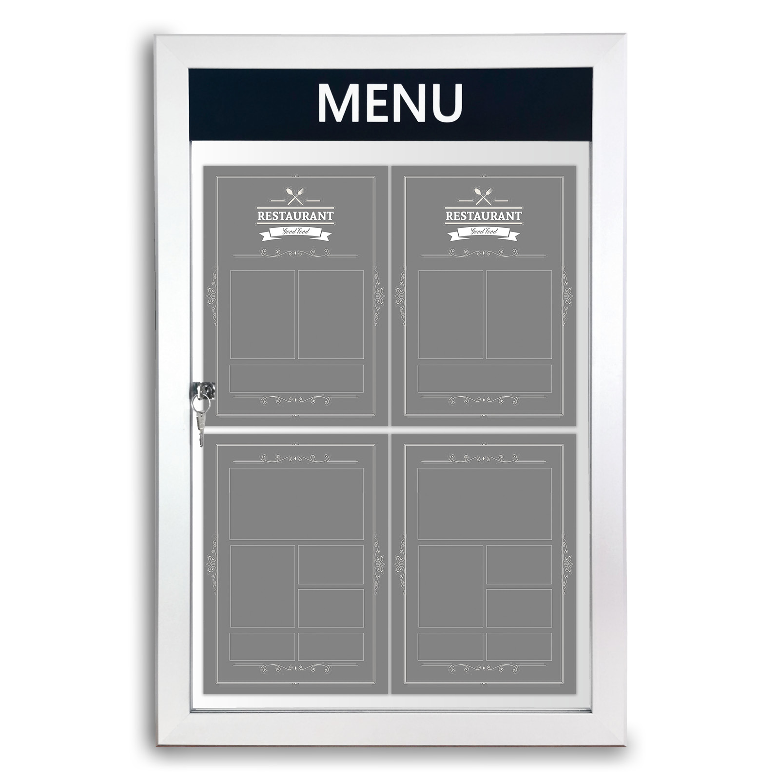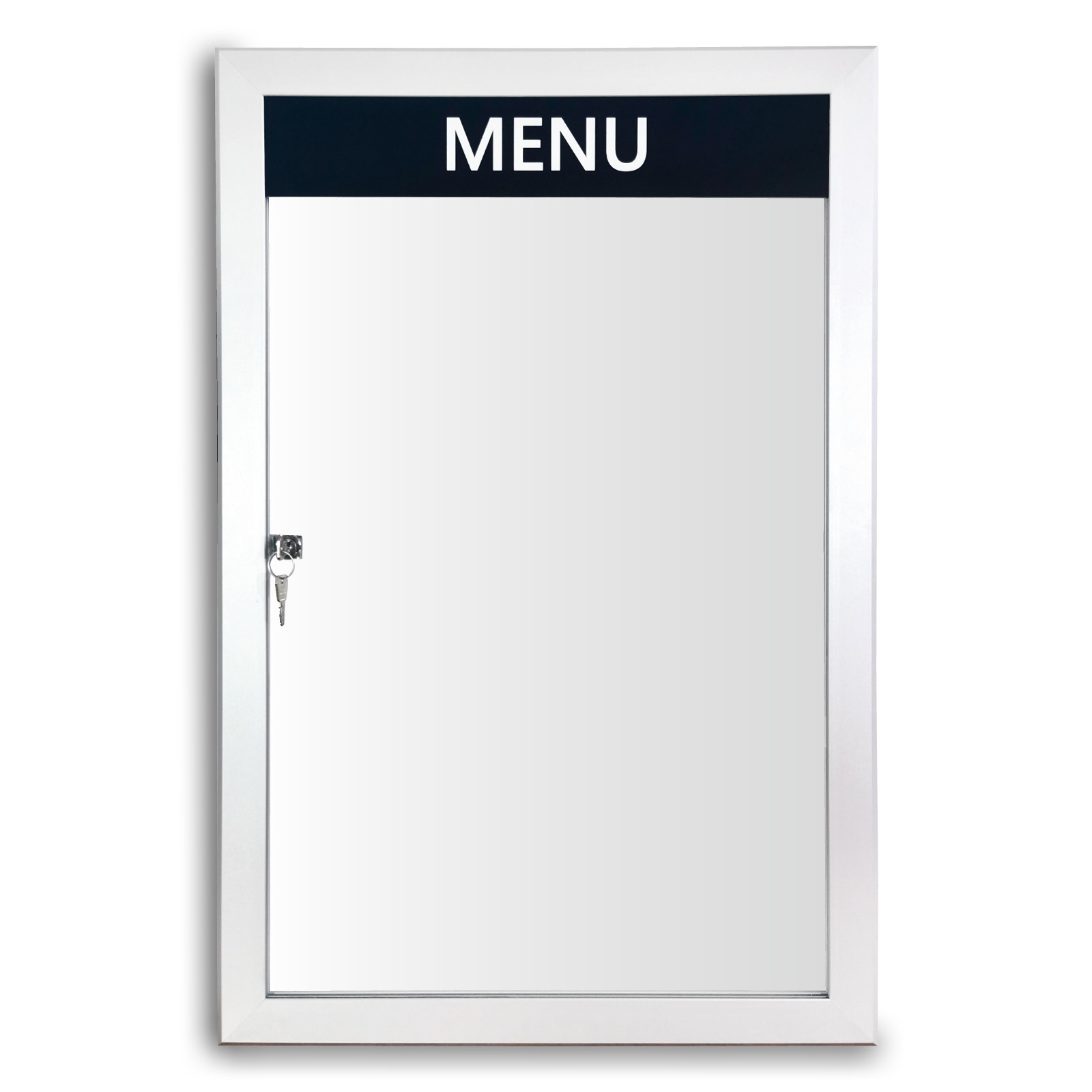 Pasek informacyjny na górnej części szyby pozwala na umieszczenie dodatkowych informacji w estetyczny sposób. Wysokość paska zależy od formatu gabloty: dla gablot mieszczących 2 i 4 arkusze A4 wynosi 80 mm, a dla większych (6, 9, 12, 15 arkuszy A4) – 100 mm. Wielkość liter na naklejce to odpowiednio 40 mm i 70 mm.