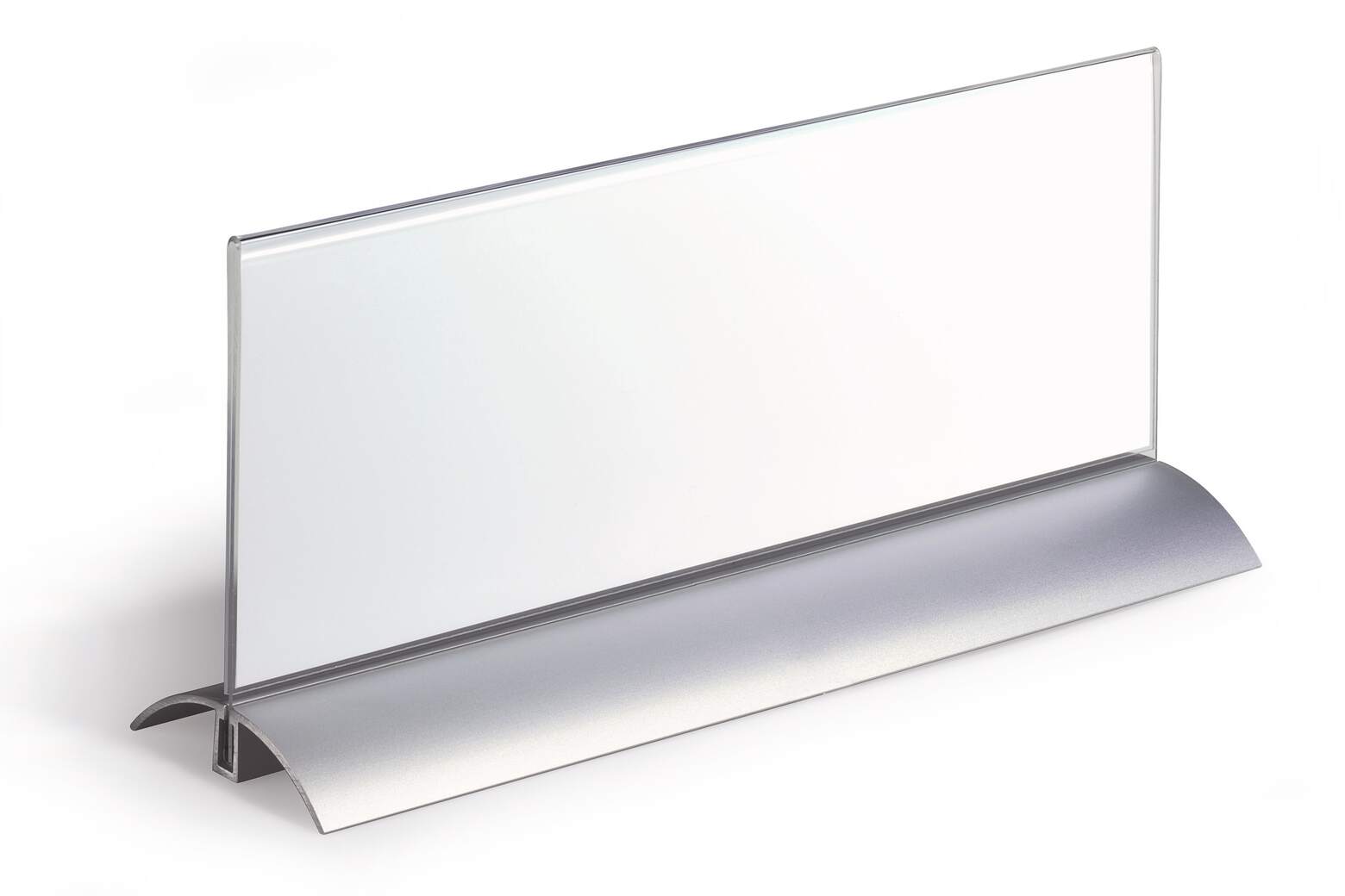 Jego przezroczyste okienko z akrylu oraz solidna aluminiowa podstawa dodają prestiżowego charakteru, a także zapewniają wytrzymałość i stabilność. Wielofunkcyjny identyfikator stołowy De Luxe jest praktycznym produktem, który można wykorzystać w wielu miejscach – od biur po sklepy i restauracje.