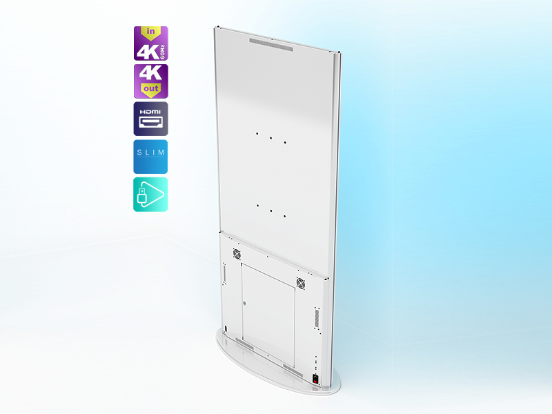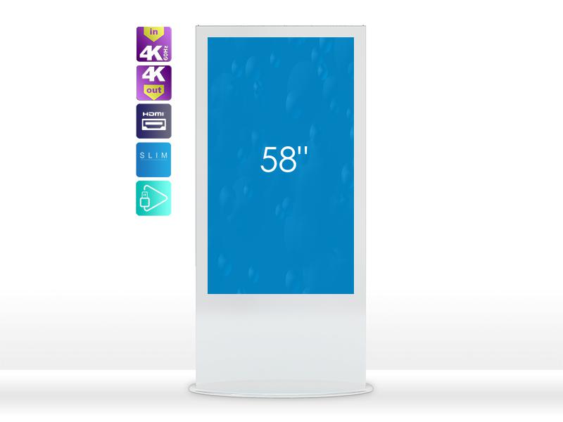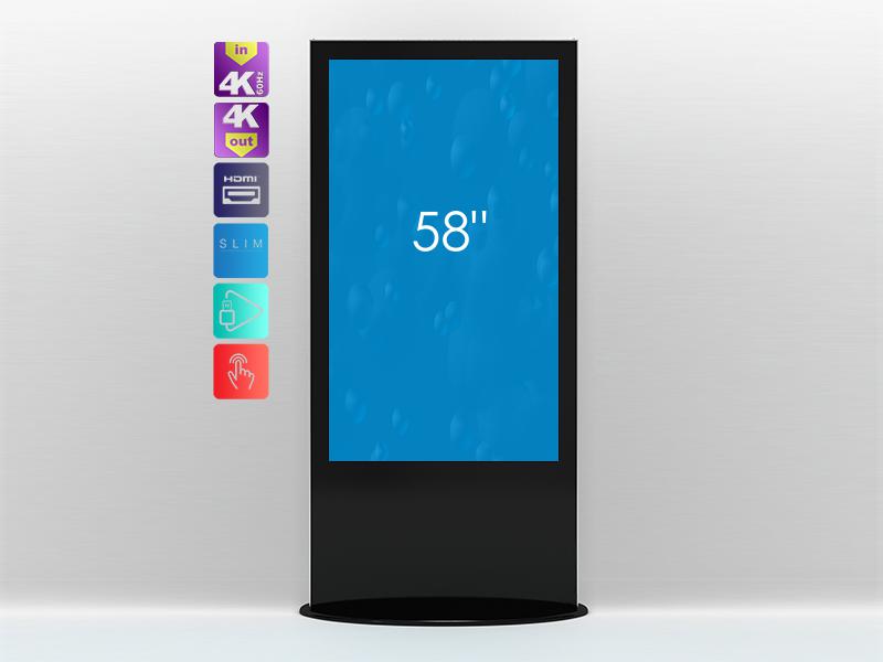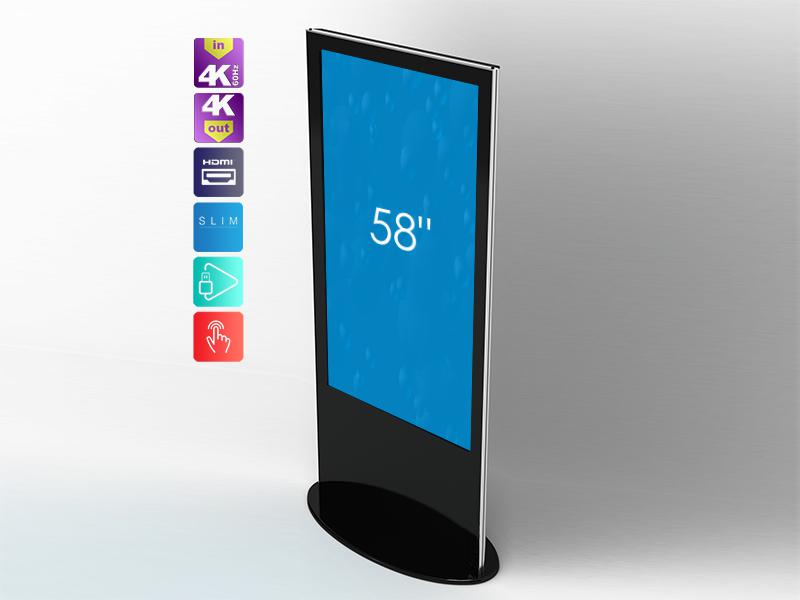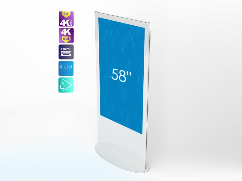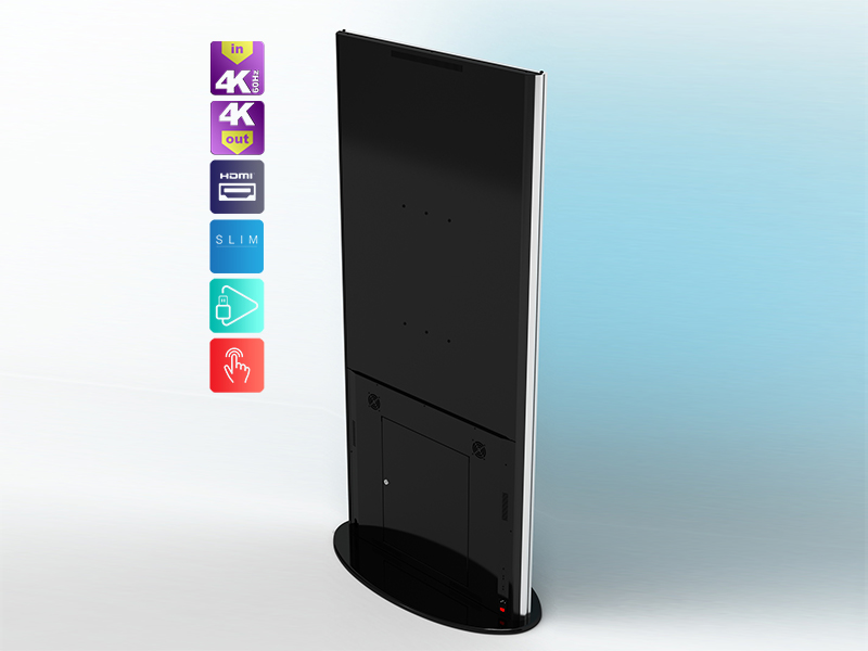 Oglądający może znajdować się bardzo blisko urządzania, nie zauważając pikseli - jest to zasługą monitora o bardzo wysokiej rozdzielczości 4K, która charakteryzuje się czterokrotnie większą liczbą pikseli - aż 8 mln, w porównaniu do powszechnie używanej rozdzielczości Full HD. Ten cienki totem multimedialny to najbardziej konkurencyjne cenowo urządzenie w swojej kategorii.