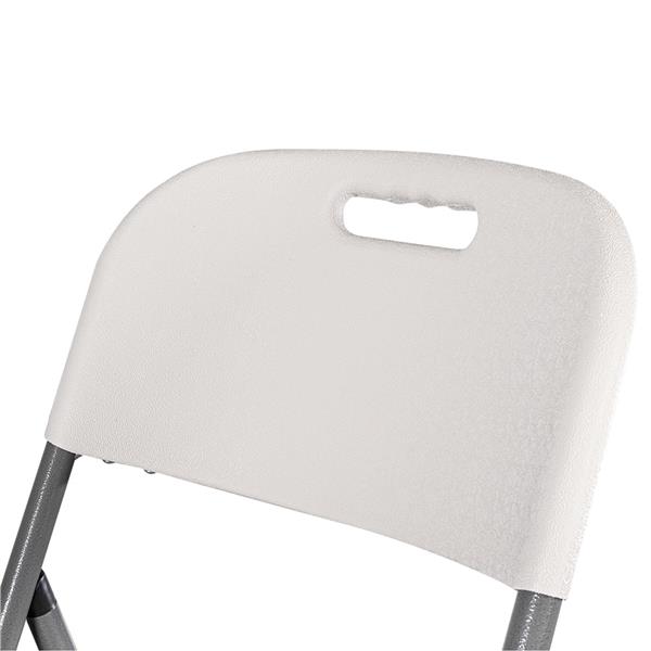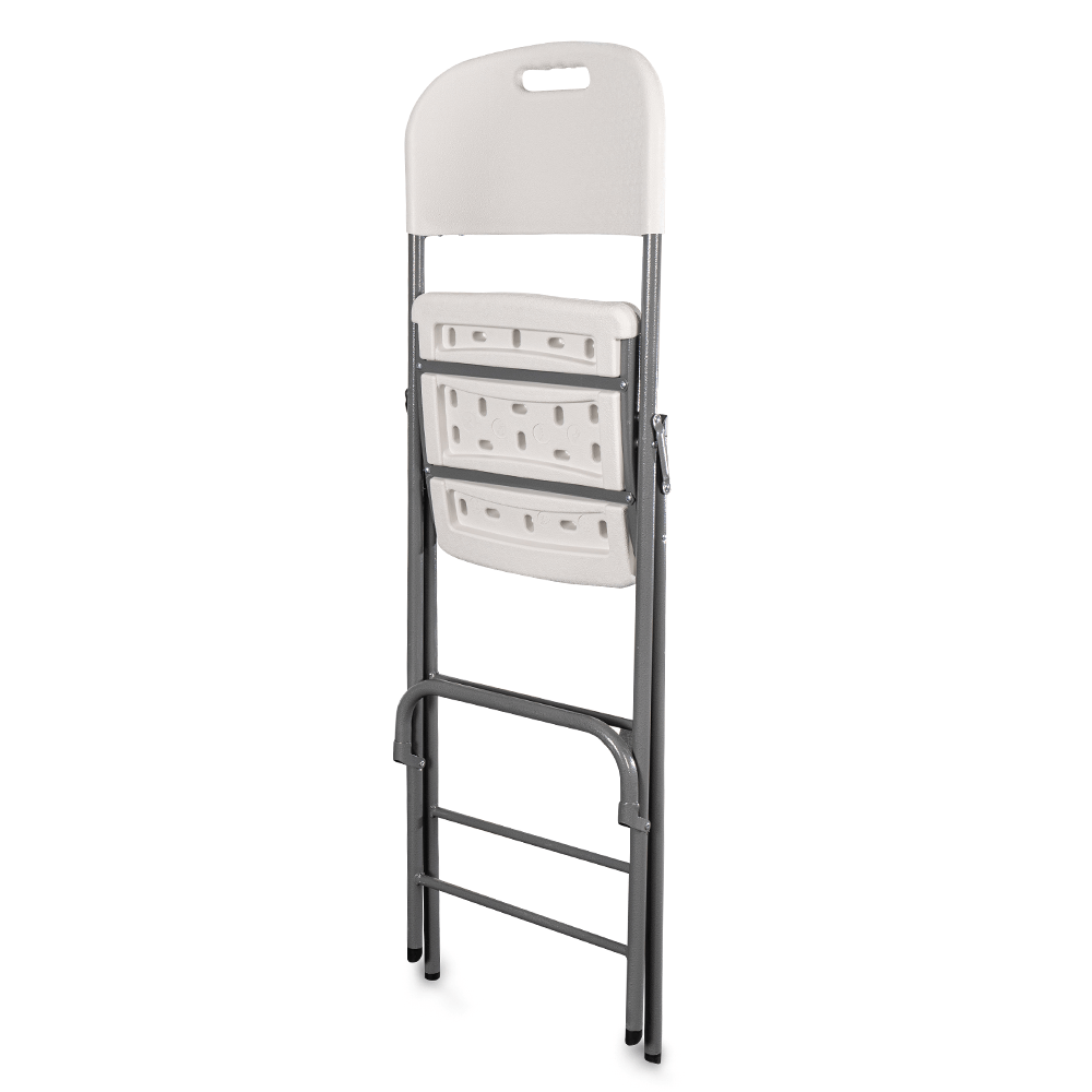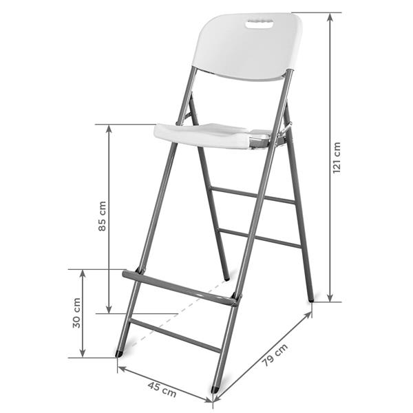 Siedzisko i oparcie wykonane są z polietylenu – materiału o wysokiej odporności na uderzenia, wilgoć i chemikalia. Stalowy stelaż zapewnia stabilność i trwałość, a cała konstrukcja cechuje się wytrzymałością do 200 kg. Antypoślizgowe końcówki nóg chronią przed przesuwaniem, natomiast stalowy podnóżek gwarantuje wygodne podparcie dla nóg, co zwiększa komfort użytkowania. Krzesło jest jednocześnie wysokie, lekkie i składane, dzięki czemu jego transport i przechowywanie są wyjątkowo proste. To praktyczne rozwiązanie zarówno dla firm eventowych, jak i hoteli, restauracji czy organizatorów imprez.