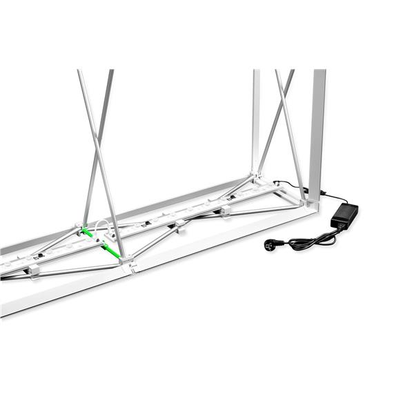 W zestawie znajduje się dwie listwy LED oraz jeden zasilacz, co sprawia, że oświetlenie jest kompletnym i gotowym do użycia produktem. Listwy te są przewidziane do stosowania z ściankami reklamowymi Preston Pop Up.
