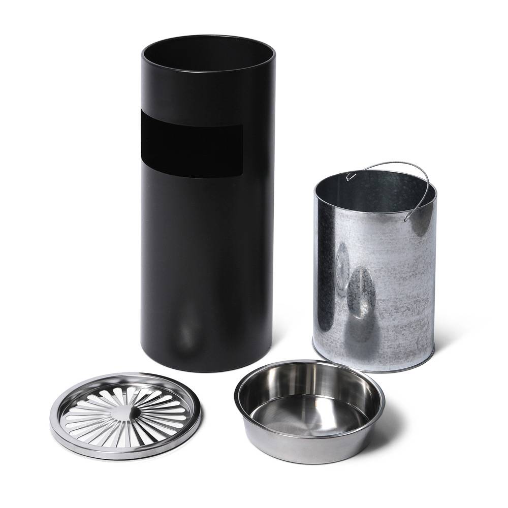 W górnej części kosza znajduje się popielniczka wykonana z wytrzymałej stali nierdzewnej w eleganckim, srebrnym wykończeniu. Została zaprojektowana tak, aby ułatwić użytkownikom bezpieczne gaszenie i wyrzucanie popiołu. Wewnątrz kosza znajduje się pojemnik wewnętrzny z ocynkowanej stali, wyposażony w wygodny uchwyt. Dzięki temu opróżnianie i utrzymanie w czystości jest szybkie i bezproblemowe.