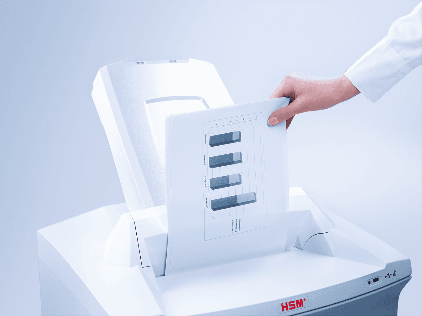 | Rozmiar cięcia w mm | Wydajność cięcia w arkuszach 80 g/m2 | Stopień bezpieczeństwa wg DIN 66399 | Niszczone materiały | Waga w kg |