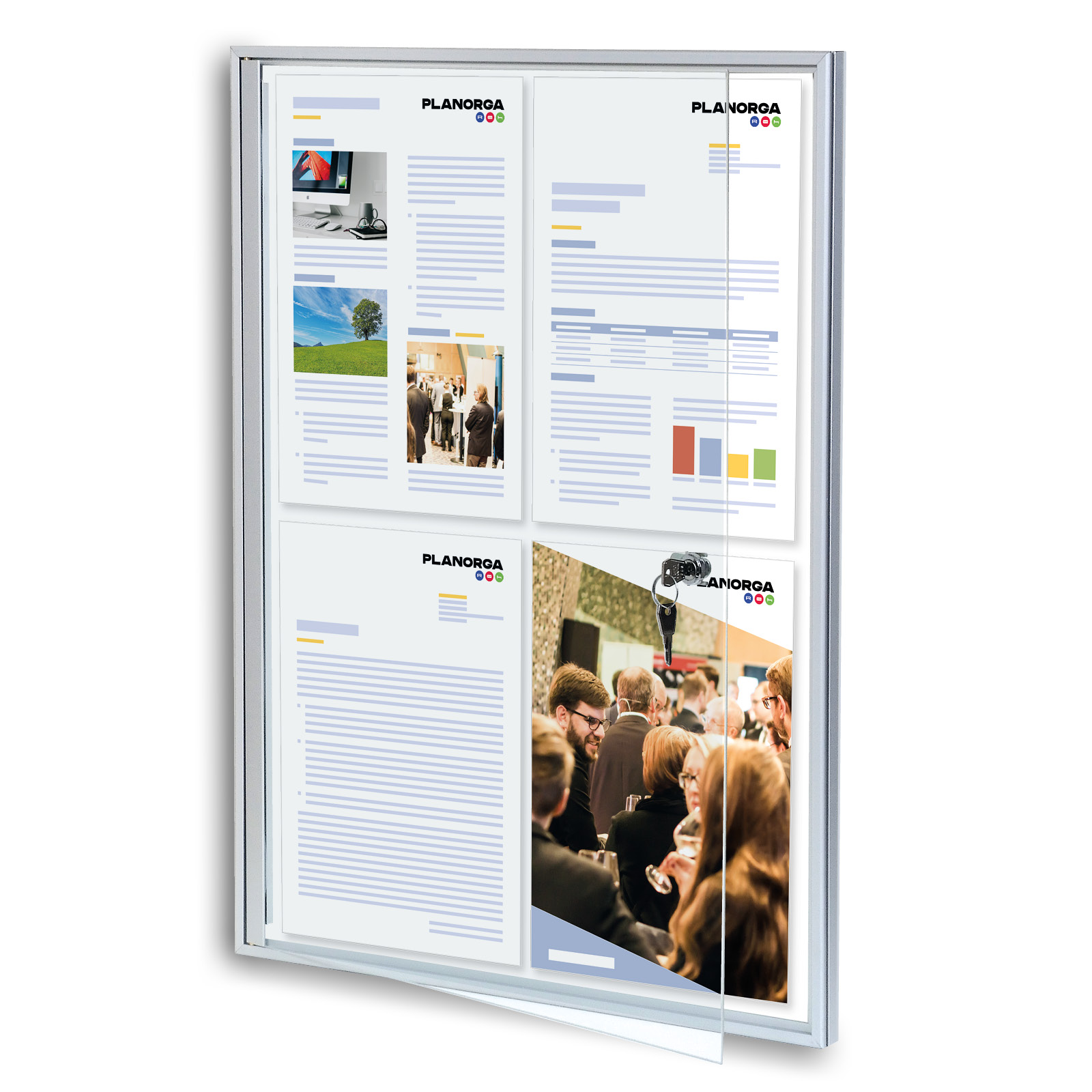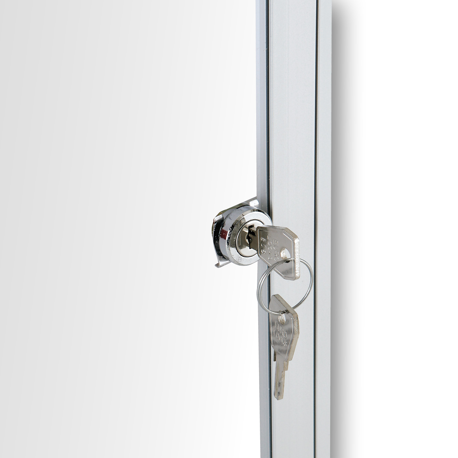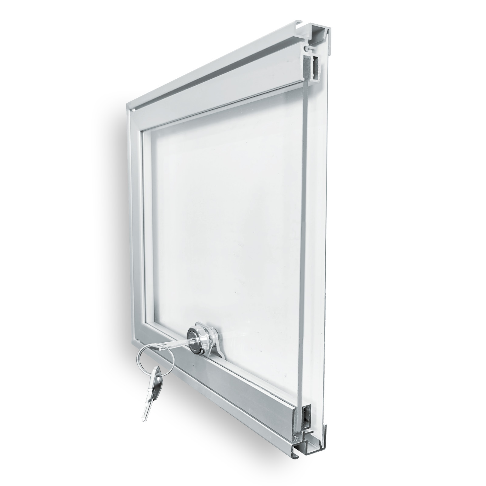 Gablota Ekstra Plata posiada drzwi otwierane skrzydłowo, co zapewnia łatwy dostęp do jej zawartości. Dodatkowo, wysokiej jakości stalowy panel tylny jest magnetyczny i pozwala na używanie magnesów i markerów. Jej głębokość wynosi tylko 20 mm, a wewnętrzna głębokość to 12 mm, co sprawia, że jest idealna do mniejszych przestrzeni.