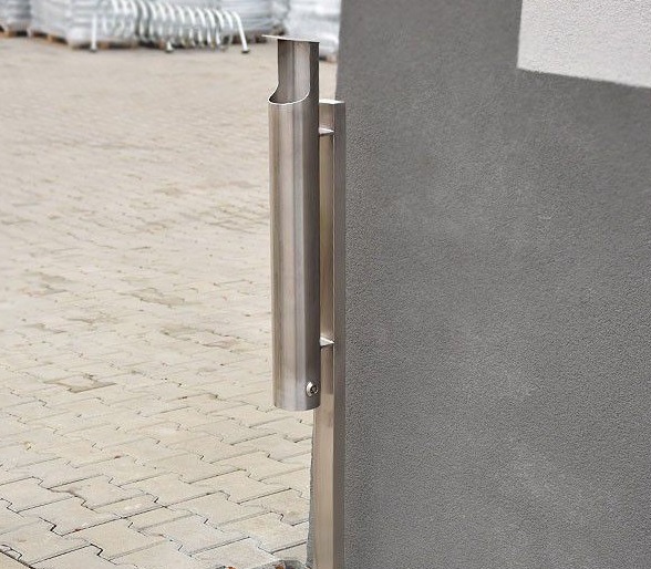 Popielnica została wykonana z solidnej stali nierdzewnej, co zapewnia jej trwałość oraz elegancki wygląd, który doskonale wpasowuje się w każde otoczenie – od przestrzeni biurowych po publiczne miejsca relaksu na świeżym powietrzu. Elementy konstrukcyjne, takie jak profil 50x30x2 mm oraz rura o średnicy Ø 76,1x2 mm, gwarantują stabilność i bezpieczeństwo użytkowania.