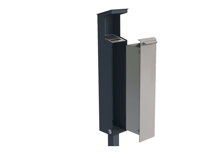 Dostępna w dwóch wersjach wykonania – ze stali nierdzewnej lub ocynkowanej – popielnica oferuje odporność na korozję i uszkodzenia mechaniczne, co gwarantuje jej długotrwałe użytkowanie nawet w trudnych warunkach atmosferycznych. Wysokość urządzenia wynosi 112 cm, a jego głębokość 15 cm, co sprawia, że jest wystarczająco kompaktowa i łatwa w obsłudze.