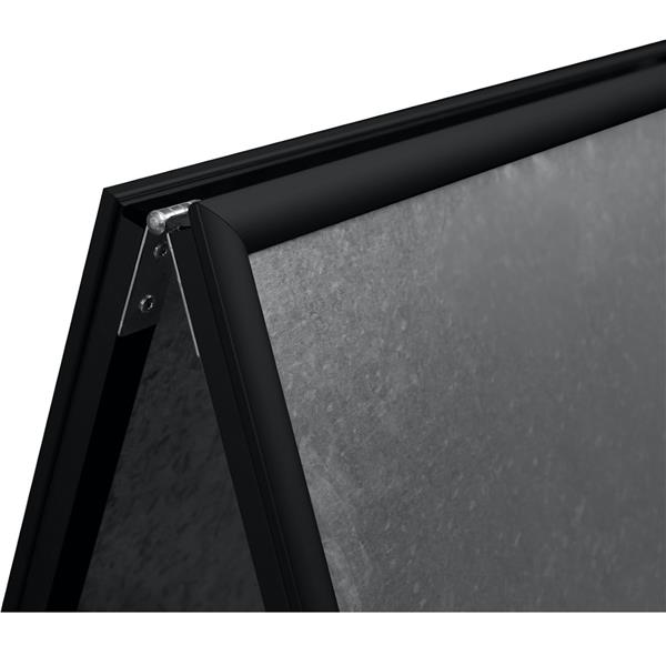 Dzięki formatowi A2, potykacz jest wystarczająco duży, by zaintrygować, ale nie zajmuje zbyt wiele miejsca, więc sprawdzi się zarówno wewnątrz, jak i na zewnątrz – przed sklepem, restauracją czy w biurze. Skróć czas wymiany treści – wystarczy, że zdejmiesz przednią szybkę, a potem włożysz nowy plakat czy ogłoszenie. To łatwe i szybkie, bez konieczności używania taśmy czy kleju!