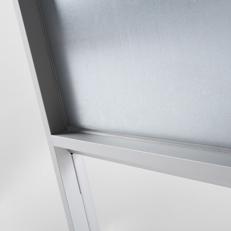 Potykacz Prime został wykonany z lekkiego i trwałego aluminium. Odporny na wstrząsy plecy z blachy nierdzewnej z silikonową uszczelką zapewniają dodatkową sztywność konstrukcji. Dzięki temu ekspozycja reklamowa jest jeszcze bardziej trwała i odporna na warunki atmosferyczne.
