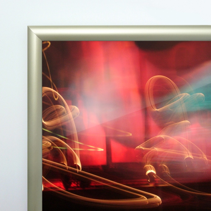 Cienki profil o szerokości 9,5 mm podkreśla minimalistyczny charakter ramy, sprawiając, że świetnie wkomponowuje się w różne style wnętrz – zarówno nowoczesne biura, jak i przestrzenie publiczne, galerie czy stoiska targowe. Oszklenie akrylowe chroni zawartość przed kurzem, zarysowaniami i działaniem promieni UV, a tylna płyta MDF wzmacnia konstrukcję, gwarantując jej trwałość i stabilność.