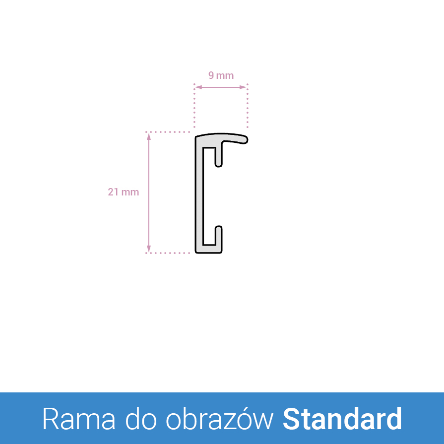 Cienki, elegancki profil o grubości 9 mm sprawia, że rama prezentuje się subtelnie i nie przytłacza prezentowanych treści, zachowując przy tym swoją funkcjonalność. Zastosowane oszklenie akrylowe skutecznie chroni dokumenty, plakaty czy grafiki przed zabrudzeniami, zarysowaniami i innymi uszkodzeniami mechanicznymi. Dodatkowym atutem jest solidne plecy wykonane z płyty MDF, które zapewniają dodatkowe wzmocnienie i trwałość całej konstrukcji.
