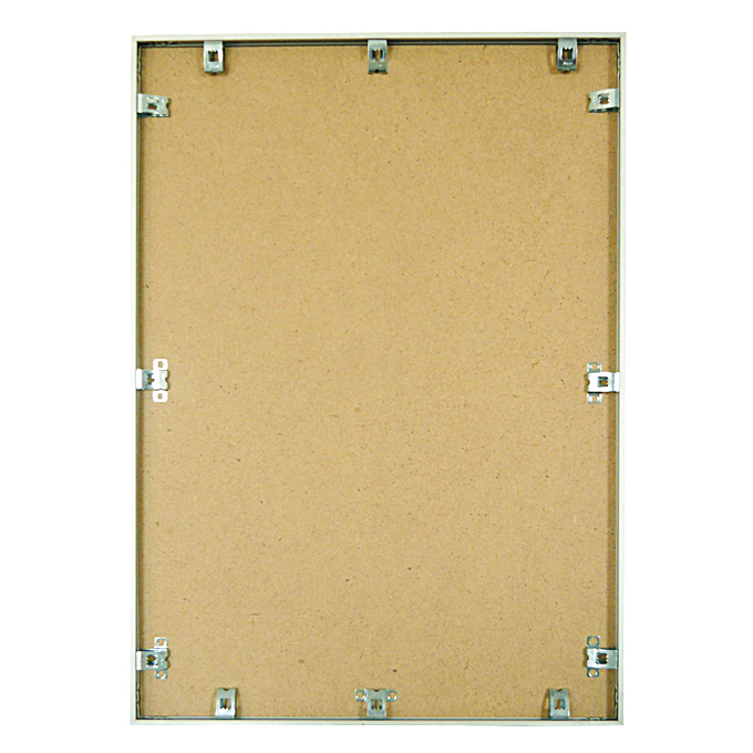 Montaż ramy jest prosty i szybki. Zawieszenie ramy odbywa się za pomocą klipsów, które zapewniają stabilne mocowanie ramki na ścianie. W formatach większych niż 50 x 60 cm klipsy są dodatkowo nitowane, co zapewnia jeszcze większą trwałość i stabilność ramki.W formatach mniejszych, takich jak 13 x 18 cm, plecy ramki są wyposażone w podpórkę, umożliwiającą postawienie ramki na płaskiej powierzchni, np. biurku czy półce.