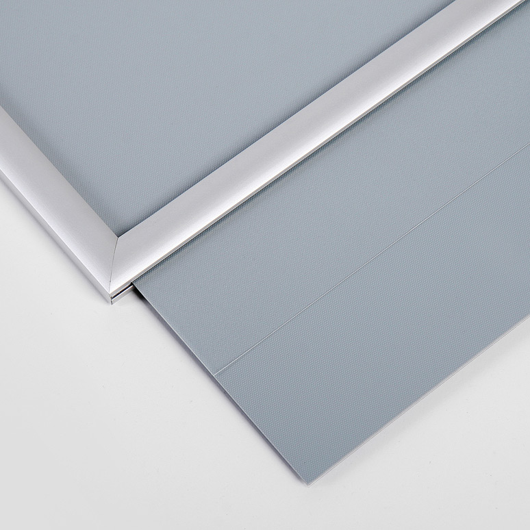 Aby wymienić plakat, należy otworzyć ramę, wyciągnąć stary plakat i wsunąć nowy, upewniając się, że jest równo ułożony. Gumowa uszczelka zabezpiecza plakat i zapobiega jego przesunięciu, a rama zatrzaskuje się z powrotem, chroniąc zawartość przed wilgocią i kurzem.