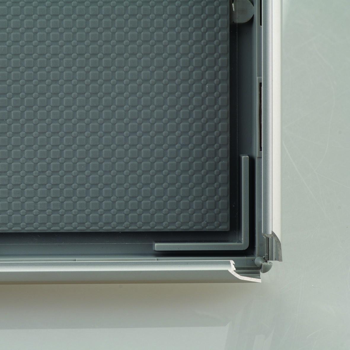 Dzięki systemowi OWZ, wymiana materiałów w ramie jest bardzo prosta i szybka, bez potrzeby zdejmowania jej ze ściany. Wystarczy otworzyć cztery krawędzie ramy i wymienić plakat lub grafikę.