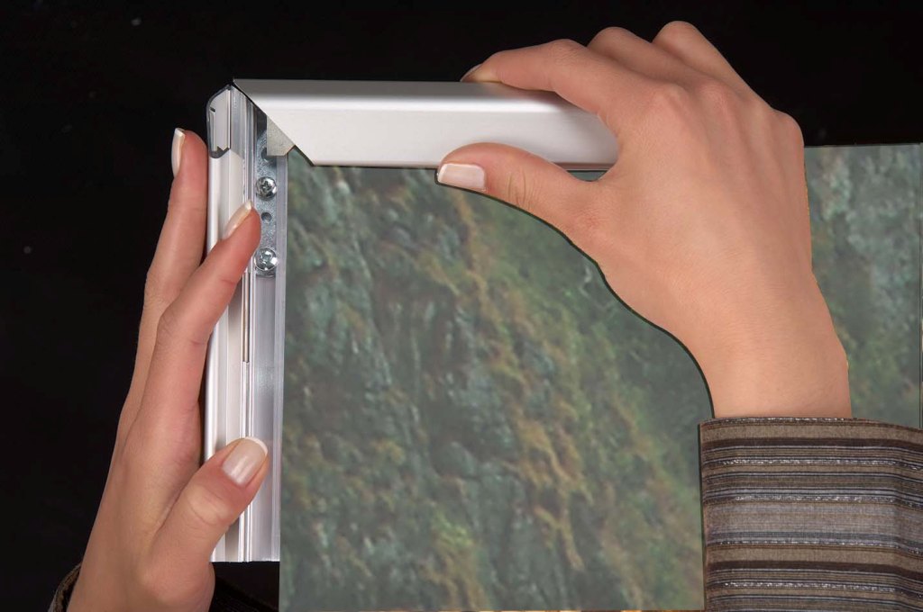 Rama jest wyposażona w zamek imbusowy, co zapewnia dodatkowe zabezpieczenie przed przypadkowym otwarciem. Dodatkowo, posiada mechanizm OWZ (Otwórz - Włóż - Zamknij), który umożliwia szybkie i łatwe umieszczenie dokumentu – wystarczy otworzyć ramę, włożyć materiał, a następnie zamknąć. Dzięki temu jest idealna do miejsc, gdzie wymagana jest większa ochrona dokumentów.
