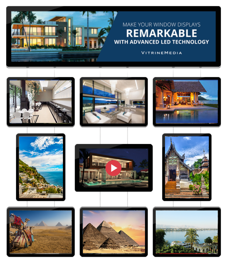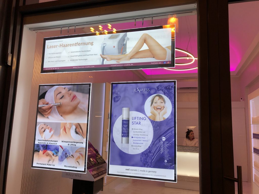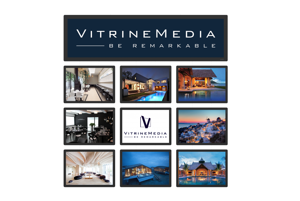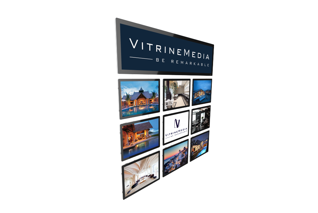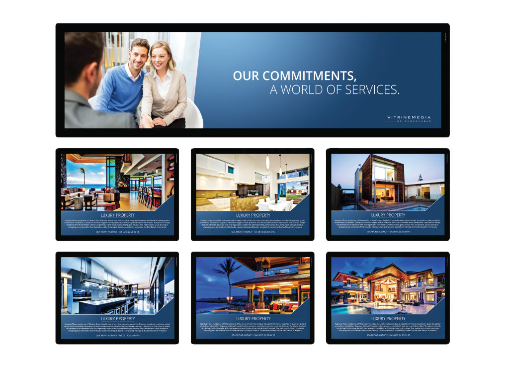 Ramka banner panoramiczny Vitrine Media Panoramic nadaje się szczególnie do dużych witryn sklepowych. Dzięki poziomemu formatowi można bardzo skutecznie zaprezentować logotypy i hasła firmowe.