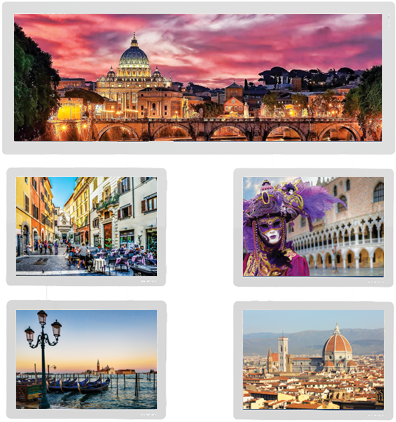 Wyjątkowa jasność sprawia, że są one atrakcyjne i wyraźne w każdych warunkach oświetleniowych. Na każdym wyświetlaczu można umieścić dwie różne reklamy, jedną skierowaną do przodu, drugą do tyłu. Zawartość może być prezentowana zarówno w pionie jak i w poziomie. Zaokrąglone, podświetlane krawędzie i wysokiej jakości emitowane światło zapewnia maksymalną widoczność. Innowacyjny system mocowania ułatwia montaż. Prezentowane treści można wydrukować we własnym zakresie na drukarce laserowej lub atramentowej na specjalnym papierze do podświetleń. Wymiana plakatu jest niezwykle prosta i szybka. Po prostu odginasz magnetyczny panel przedni ramki, wyjmujesz afisz i wkładasz nowy. VM Panoramic Banner jest kompatybilny z VM TWO, VM TWO DIAMOND, VM Sign R60 oraz VM Light&Play.