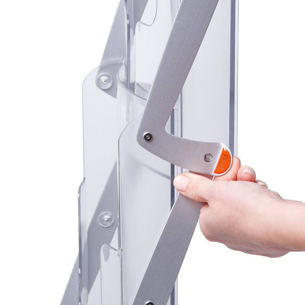 Stojak rozkładany 4xA4 jest zaprojektowany z myślą o stabilności i wytrzymałości. Dzięki solidnej konstrukcji metalowej i odpowiednio wyważonej budowie, stojak pozostaje stabilny nawet wtedy, gdy jest pełny. Pozostaje odporny na przewrócenie, nawet przy intensywnym użytkowaniu. Dzięki swoim materiałom jest także wystarczająco trwały, by wytrzymać regularne użytkowanie.