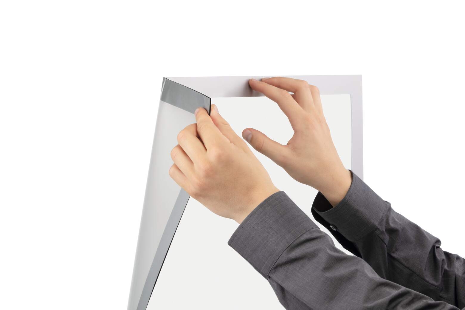 Samoprzylepna ramka informacyjna w formacie A1 to doskonałe rozwiązanie dla prezentacji informacji na gładkich i twardych powierzchniach. Dzięki prostemu mechanizmowi zmiany treści, wystarczy odchylić ramkę, wymienić kartę informacyjną i zamknąć - wszystko za sprawą magnesów. Umożliwia to wielokrotną wymianę zawartości, co sprawia, że jest idealna do prezentacji informacji, które wymagają częstej aktualizacji.