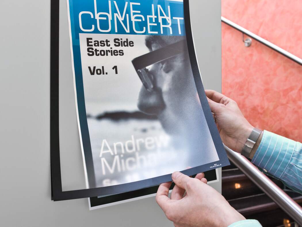 Ramkę Durable należy umieścić wyłącznie na gładkich powierzchniach. Odklejenie jest możliwe tylko z twardych i gładkich powierzchni (np. szkła).