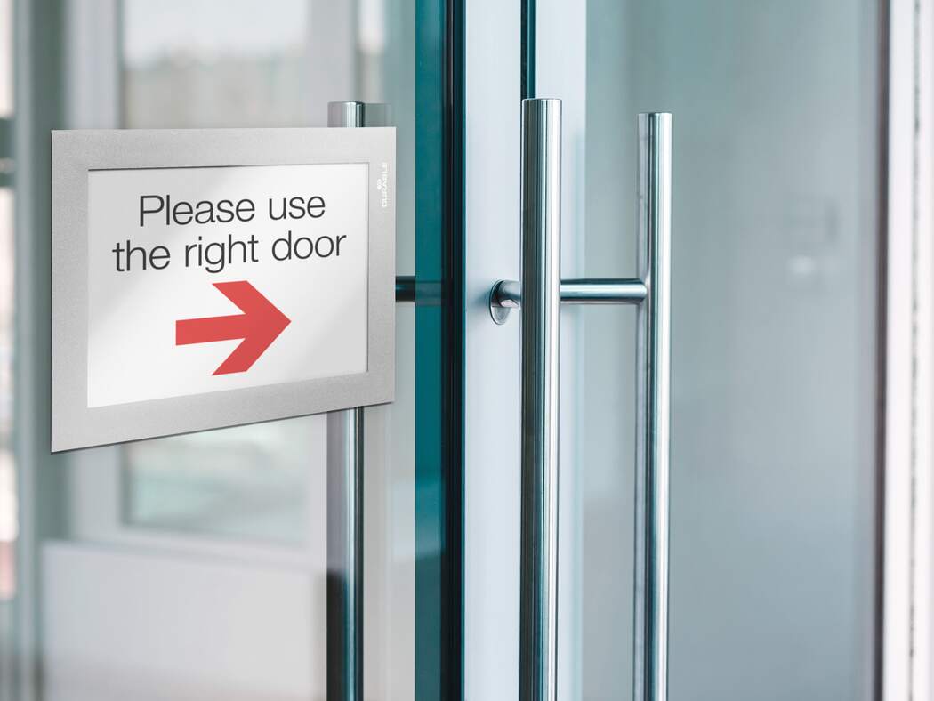 Mechanizm wymiany treści jest bardzo prosty i oparty na magnesach. Wystarczy odchylić przedni panel ramki, wymienić kartę informacyjną i zamknąć ramkę, a zawartość zostaje pewnie utrzymana dzięki magnetycznemu zapięciu. Taki system umożliwia wielokrotne i szybkie aktualizowanie treści.