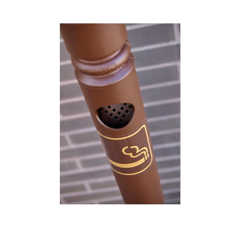 Specjalna kratka do gaszenia papierosów eliminuje możliwość wrzucania do wnętrza większych śmieci, dzięki czemu wnętrze popielnicy pozostaje uporządkowane, a proces opróżniania – łatwy i szybki. Powierzchnia słupka jest malowana na bazie cynku, co zapewnia trwałość koloru i odporność na korozję.