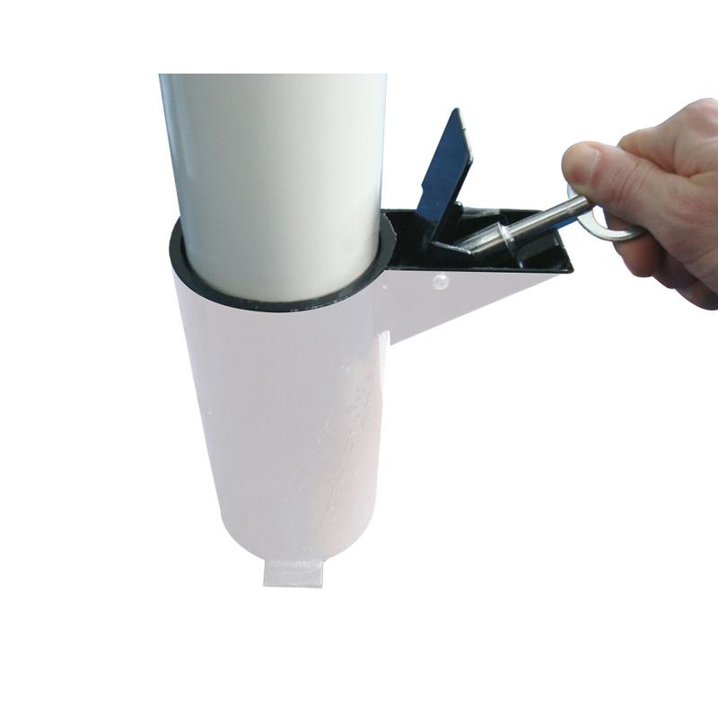 Tak, słupek wyposażono w zamknięcia: trójkątny klucz w modelu z tuleją do zabetonowania lub kłódkę w modelu mocowanym na płycie.