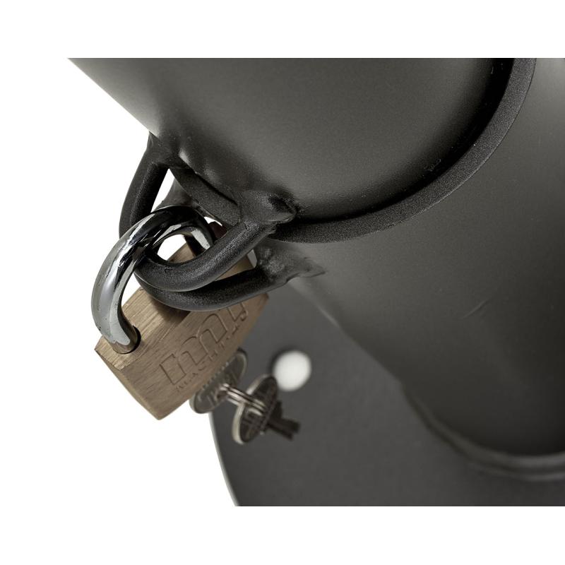 - Model z płytą montażową: przeznaczony do przykręcenia lub ustawienia na podłożu, zamykany na kłódkę.