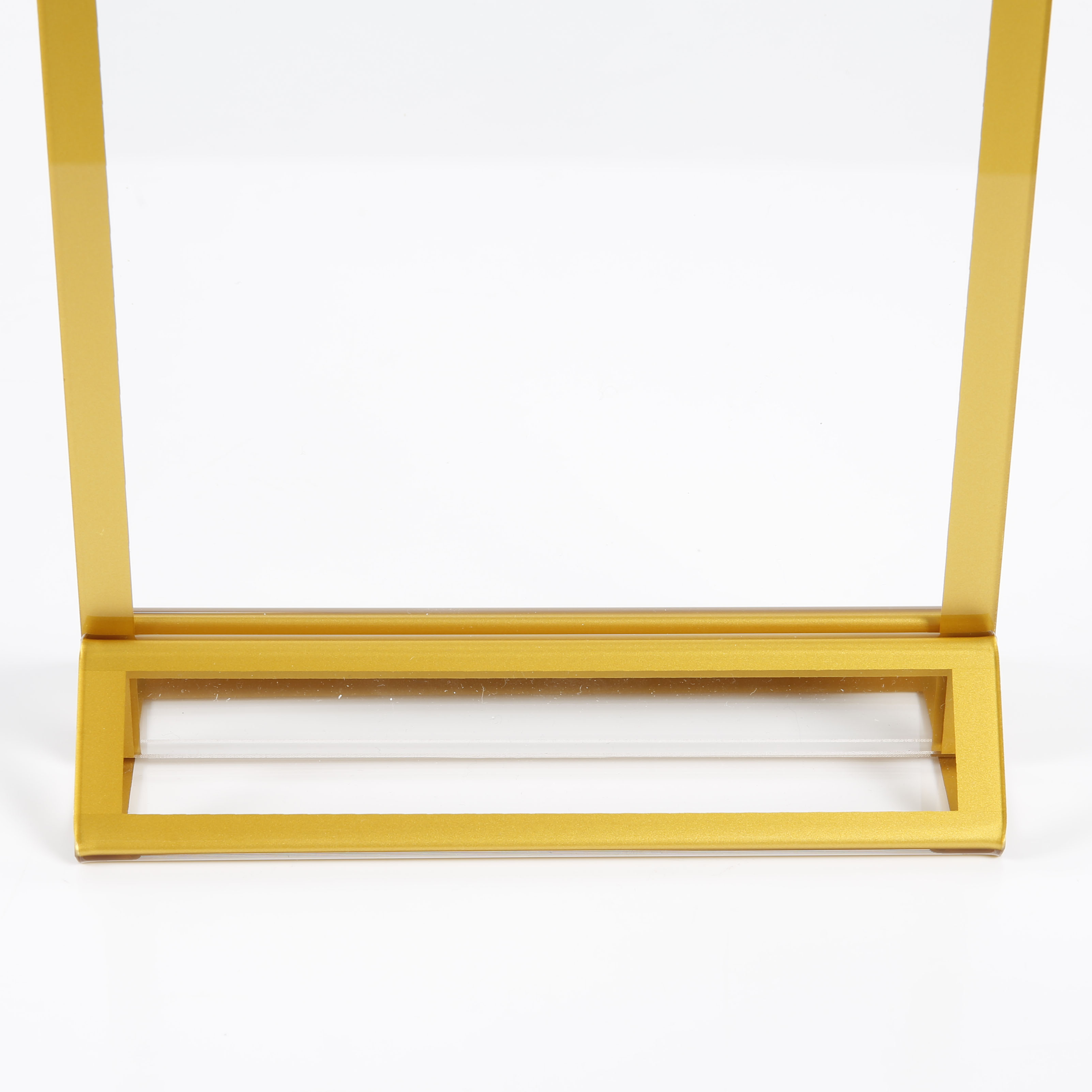 Elegancki stojak ekspozycyjny wykonany z wysokiej jakości akrylu z ozdobną złotą ramką. To praktyczne rozwiązanie do prezentacji ofert, menu, ogłoszeń i materiałów informacyjnych w biurach, hotelach, restauracjach czy szkołach.
