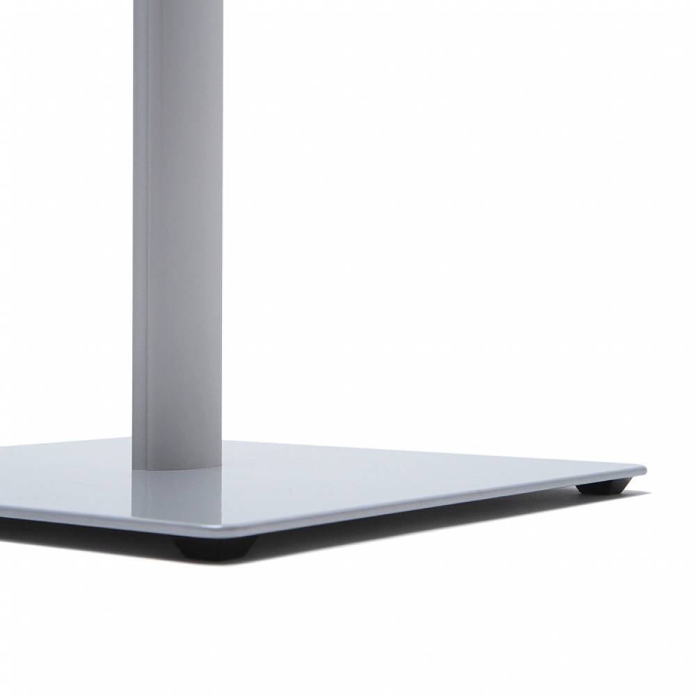 Metalowa podstawa gwarantuje stabilność i wytrzymałość, co czyni ten stojak idealnym wyborem nawet w miejscach o dużym natężeniu ruchu. Srebrny kolor eleganckiej konstrukcji sprawiają, że stojak harmonijnie wpasowuje się w różne style wnętrz, dodając im nowoczesnego charakteru.