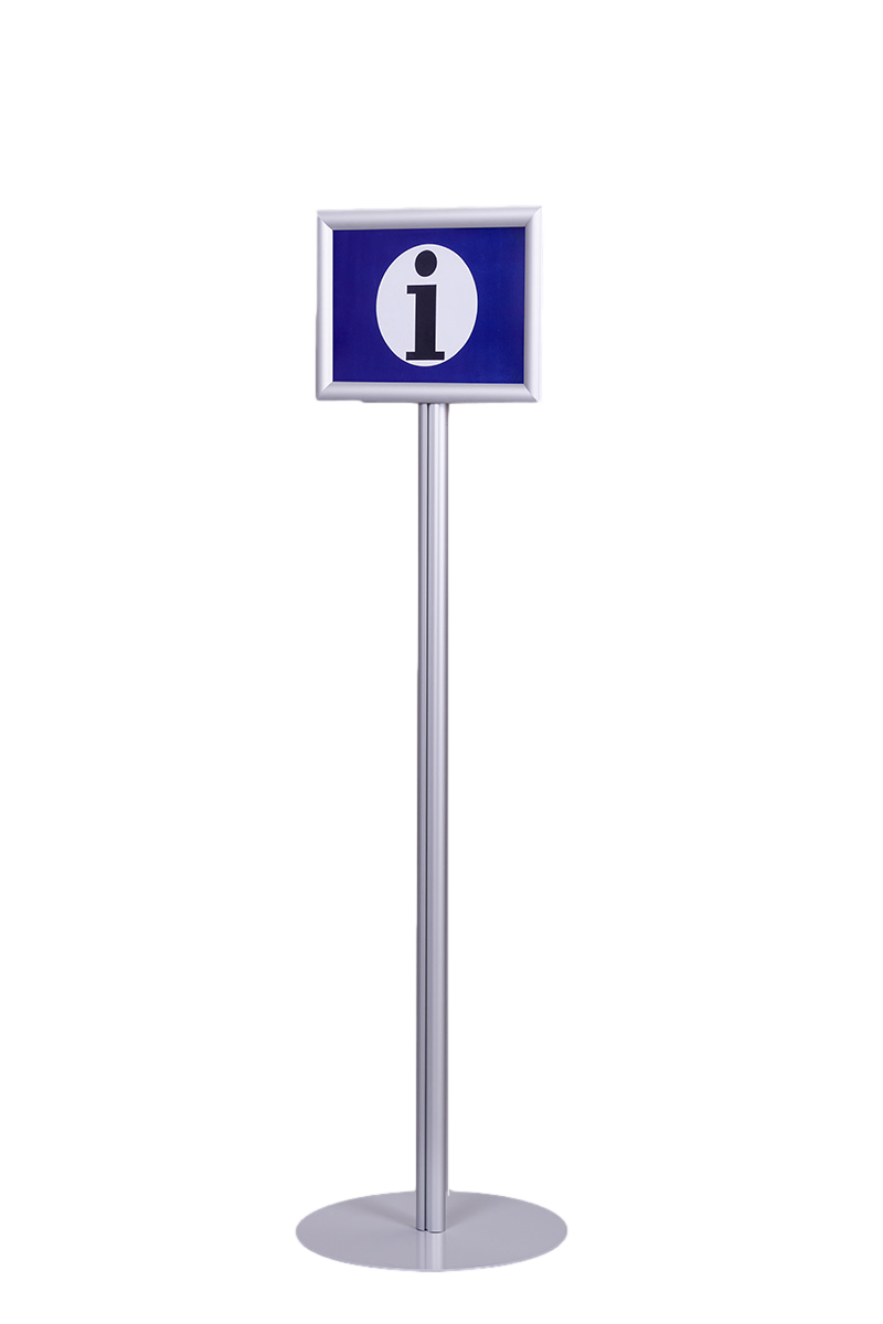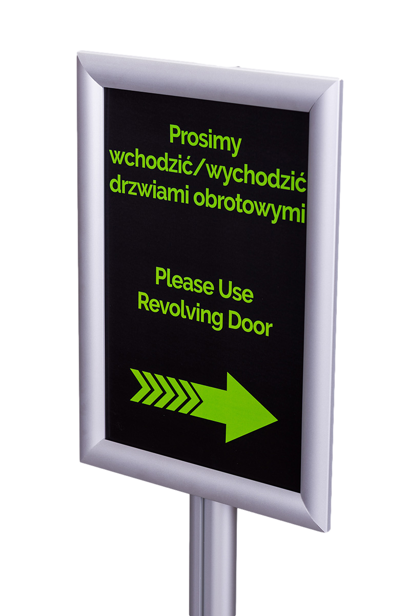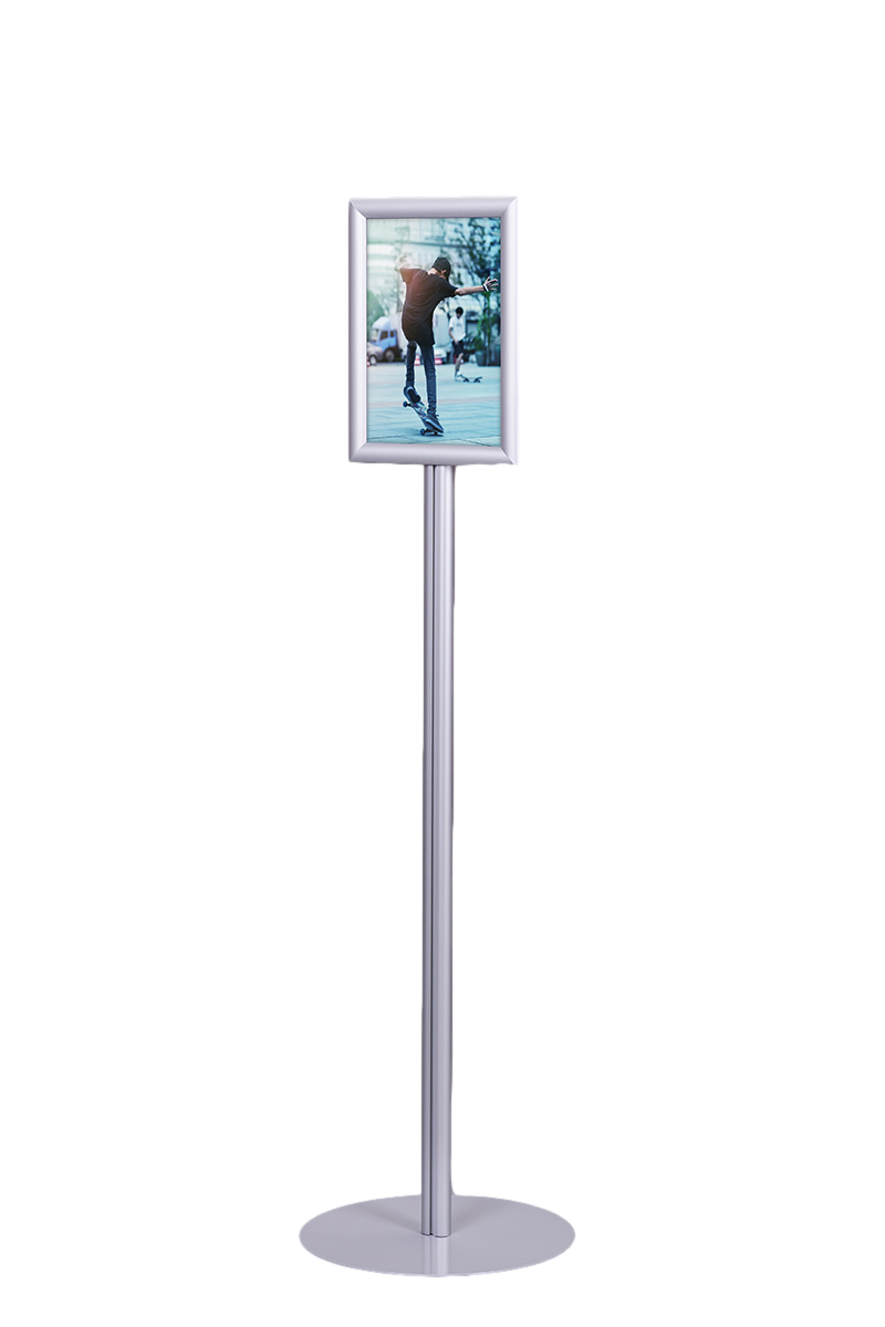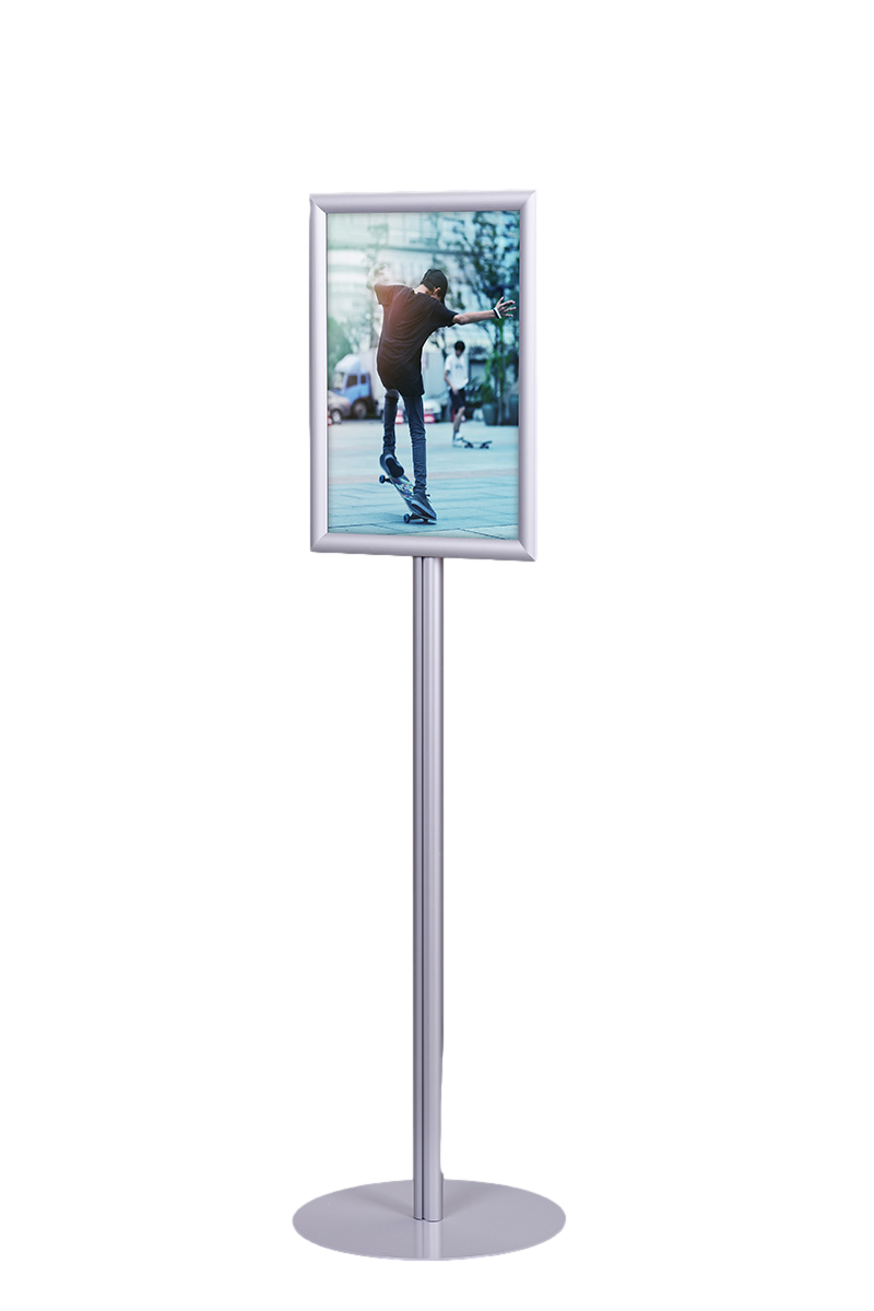 Stojak SP001 wyposażony jest w ramę zatrzaskową OWZ o profilu 25 mm, która umożliwia łatwą i szybką wymianę treści. Plakaty są chronione przez folię antyrefleksyjną o grubości 0,5 mm. Dzięki prostym narożnikom rama wygląda nowocześnie i estetycznie.