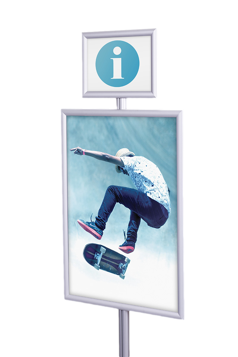 Mniejsza ramka A4 w stojaku SP007 jest idealna do prezentacji logo firmy, nazw, informacji kontaktowych lub innych krótkich komunikatów.