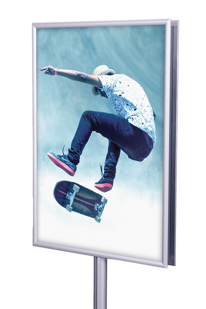 Stojak na plakaty SP006 to elegancki i funkcjonalny sposób na dwustronną prezentację materiałów reklamowych.