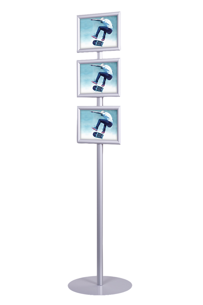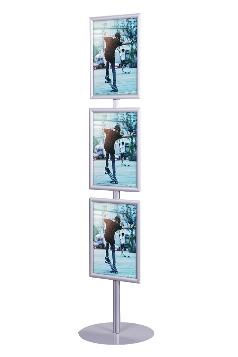 Stojak na plakaty SP012 to nowoczesne i funkcjonalne rozwiązanie, idealne do efektywnej, jednostronnej prezentacji materiałów reklamowych i informacyjnych w różnych środowiskach, takich jak hotele, biura, urzędy czy salony motoryzacyjne. Wykonany z anodowanego aluminium, charakteryzuje się lekką, ale jednocześnie wytrzymałą konstrukcją. Okrągła podstawa, lakierowana proszkowo, zapewnia stabilność i elegancki wygląd.
