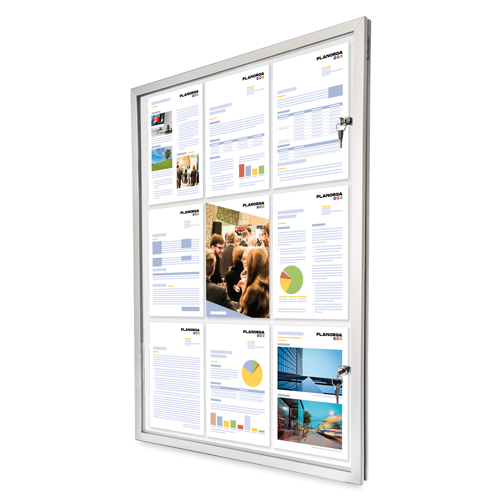 Gablotę możemy wykonać w wersji wolnostojącej, a do formatu 9xA4 może być wykonana również na 1 słupku.
