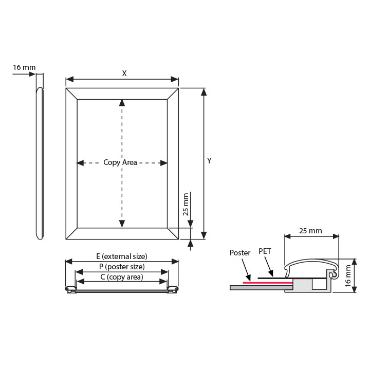| Format | Wymiary zewnętrzne | Wymiary wewnętrzne | Standardowa grubość plakatu |