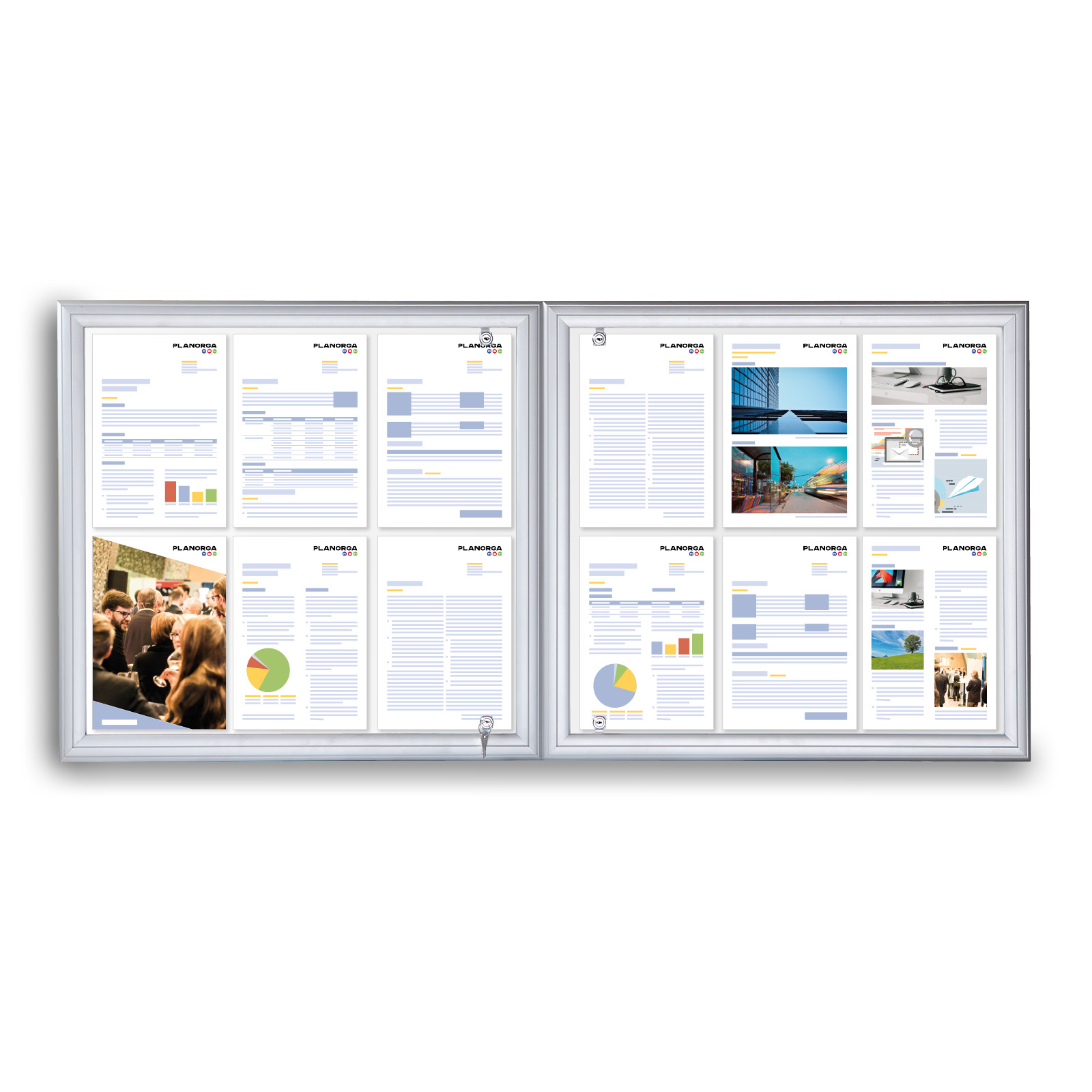 Panel magnetyczny pozwala na łatwe przyczepianie ogłoszeń za pomocą magnesów, co umożliwia szybkie zmiany treści, a także pisanie markerami suchościeralnymi, co daje dodatkową elastyczność przy prezentowaniu informacji.
