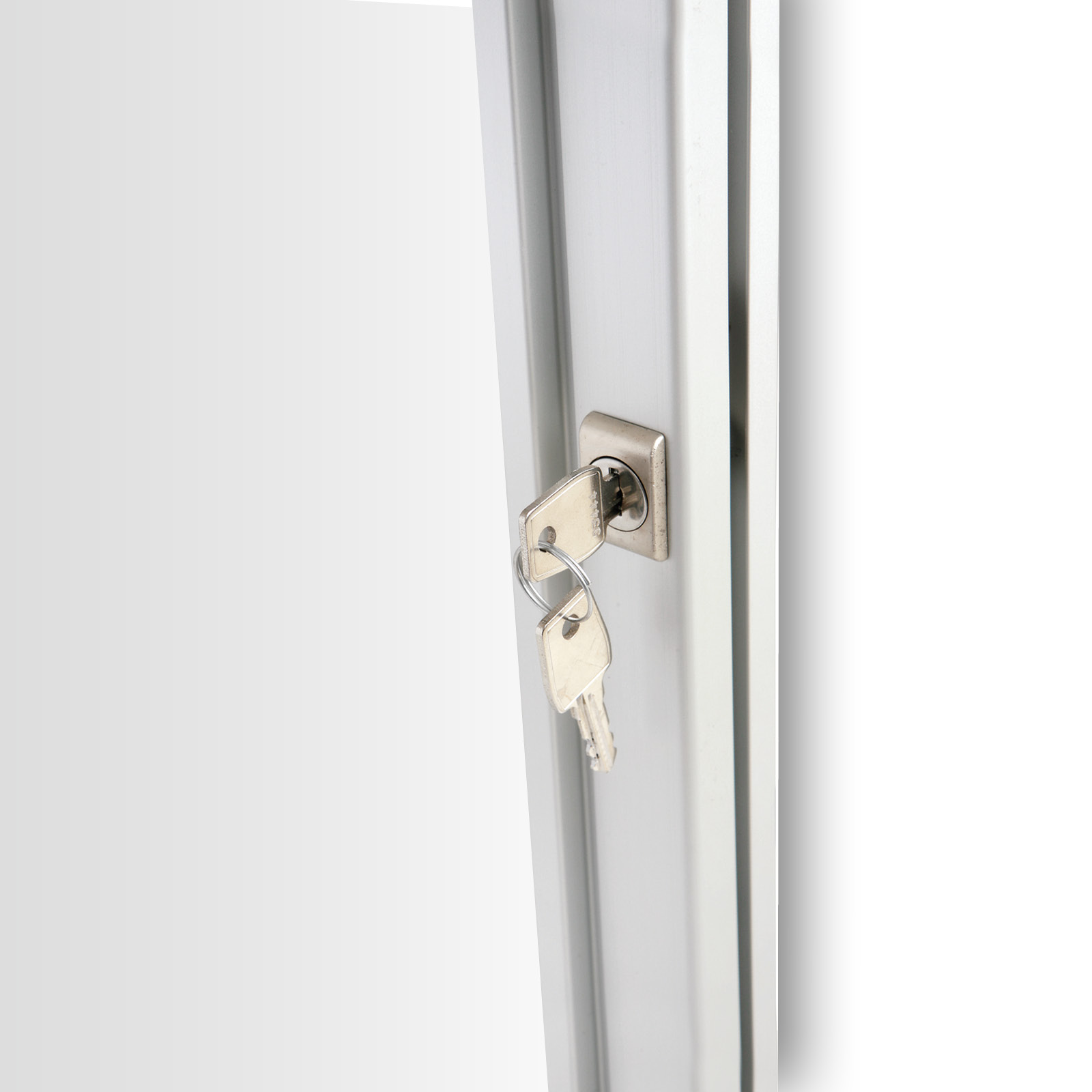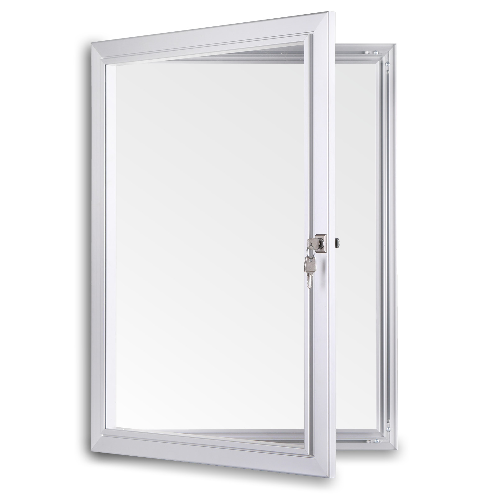 Gablota została wyposażona w wysokiej jakości panel tylny antykorozyjny, który pozwala na wykorzystanie różnego rodzaju markerów suchościeralnych i magnesów. Wybór frontu pozwala na dostosowanie gabloty do indywidualnych potrzeb - można wybrać front ze szkła hartowanego o grubości 4 mm lub z akrylu (plexi) o grubości 3 mm. Dodatkowo, w profilu gabloty znajduje się 1 lub 2 zamki, co pozwala na zabezpieczenie umieszczonych w niej informacji przed niepowołanym dostępem.