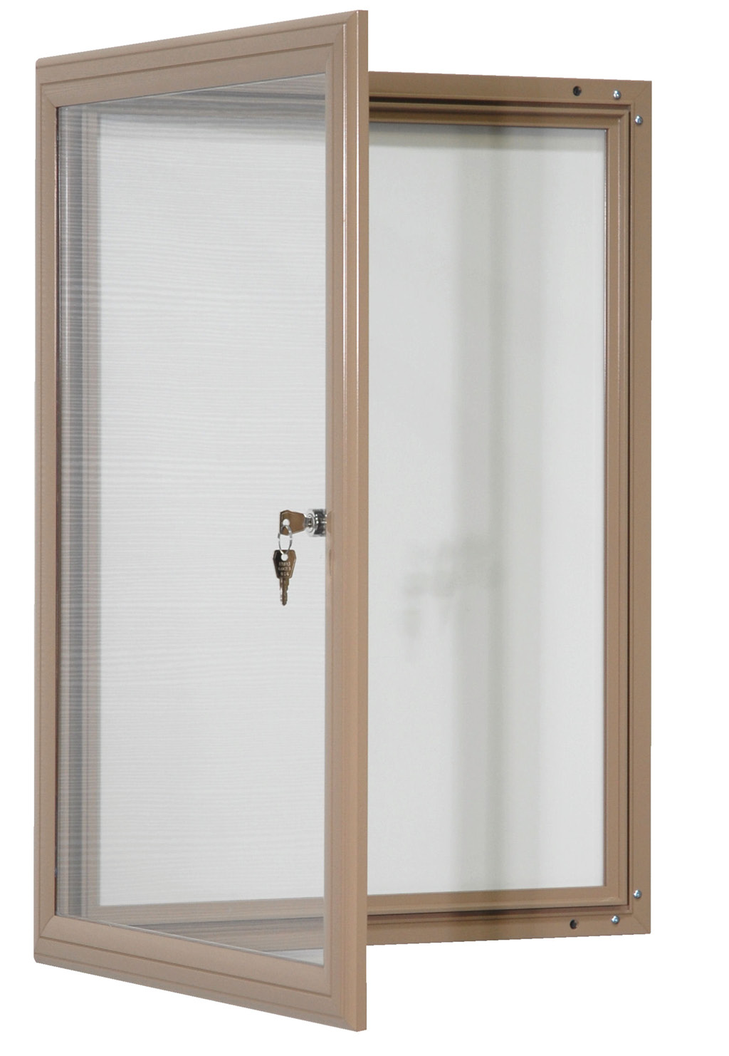 Tak, gablota Reverso została zaprojektowana do użytku na zewnątrz i dzięki anodowanej aluminiowej ramie oraz uszczelce w górnej części zapewnia odporność na warunki atmosferyczne, w tym deszcz i wilgoć.