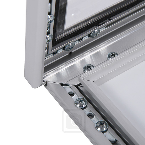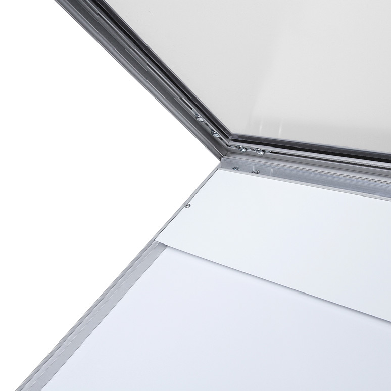 Stalowa podstawa gwarantuje stabilność i trwałość stojaka, a zamykana rama plakatowa chroni zawartość przed deszczem, śniegiem, wiatrem czy wilgocią.